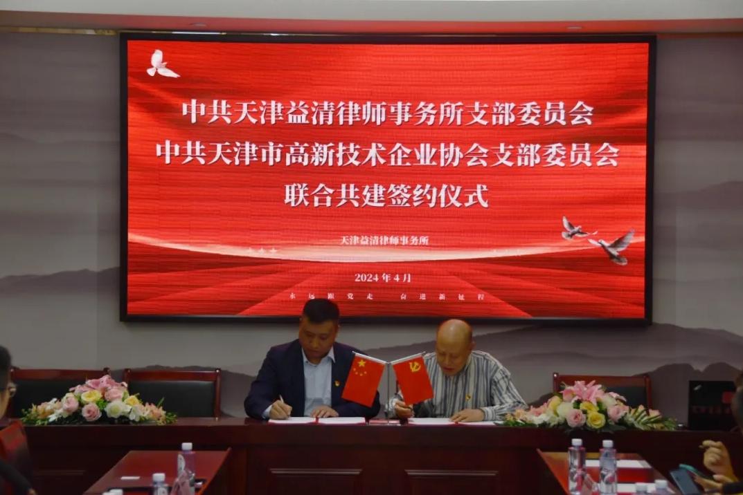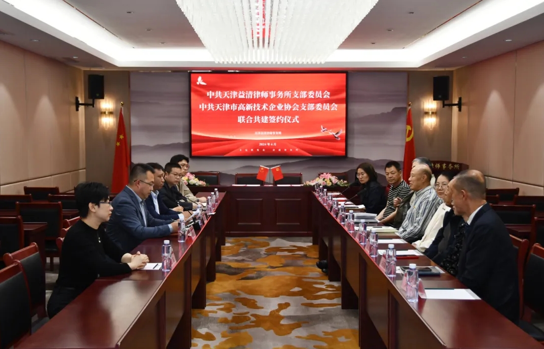 中共天津益清律师事务所支部委员会和中共天津市高新技术企业协会支部委员会开展联合共建签约仪式