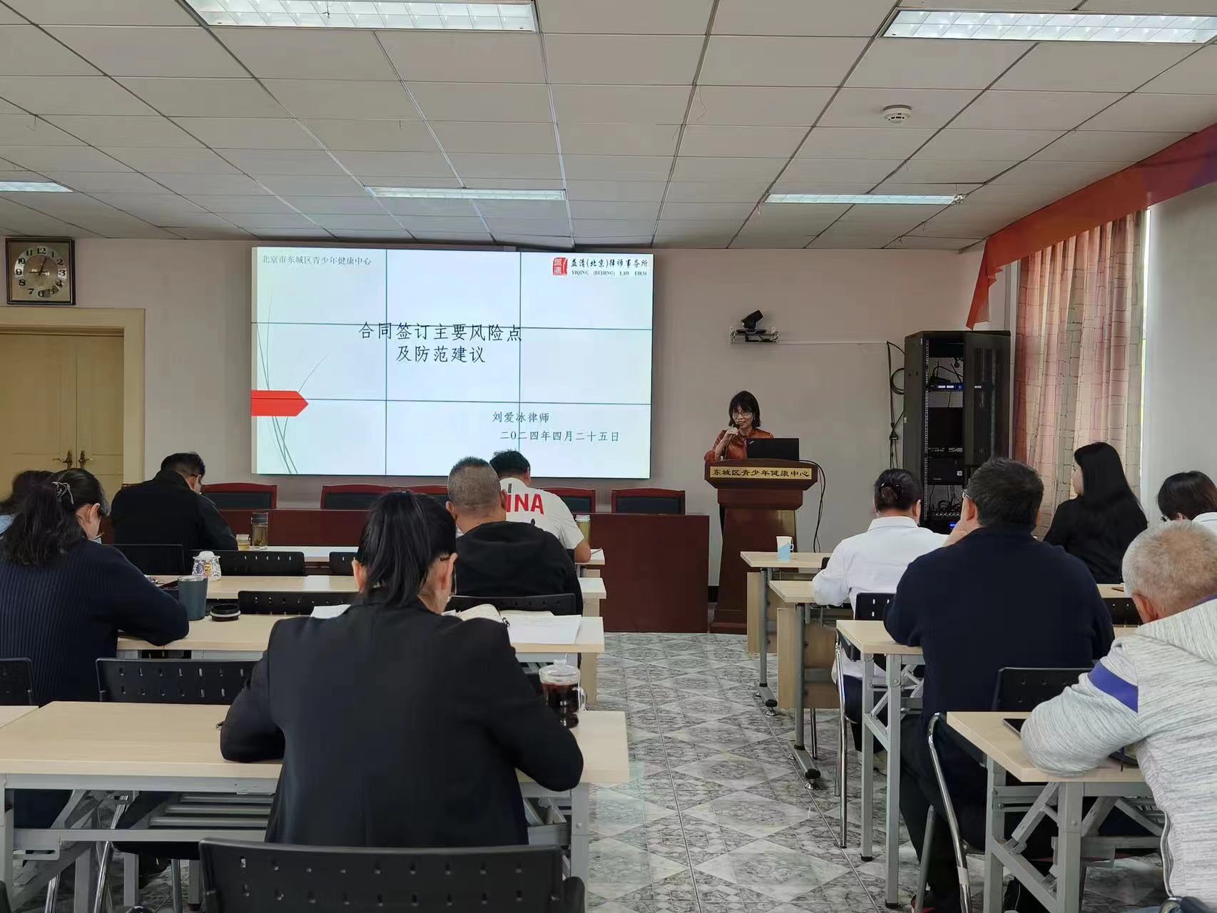 2024年4月25日,天津益清(北京)律师事务所应北京市东城区青少年健康中心邀请,为全体职工进行了一场《合同签订主要风险点及防范建议》的法治宣传讲座,由我所民事法律服务中心部长刘爱冰律师主讲,林茜钰协