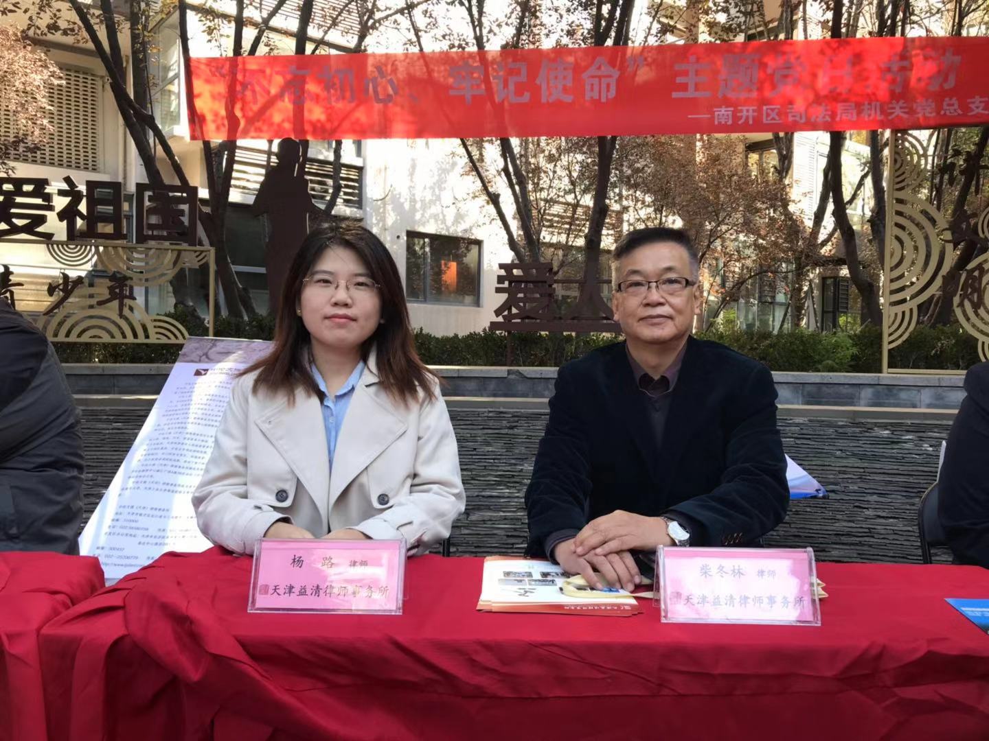 3月5日上午,南开区律工委联合区妇联共同举办的巾帼心向党 ‘典’亮津万家迎“三·八”普法维权系列活动在长虹公园宪法园举行,益清党支部赵倩律师、案件统筹部杨禹受邀参加。