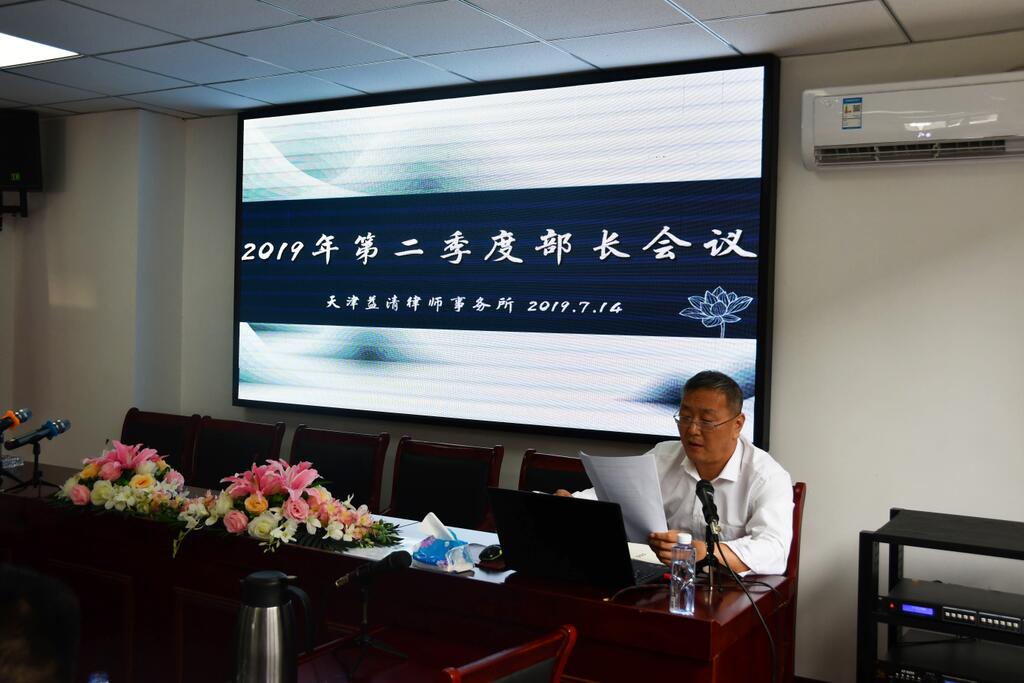 2019年7月14日下午,在我所A区一楼会议室召开天津益清律师事务所2019年第二季度部长会议。此次会议由行政管委会主任申德高主持,全体部长会议成员参加。