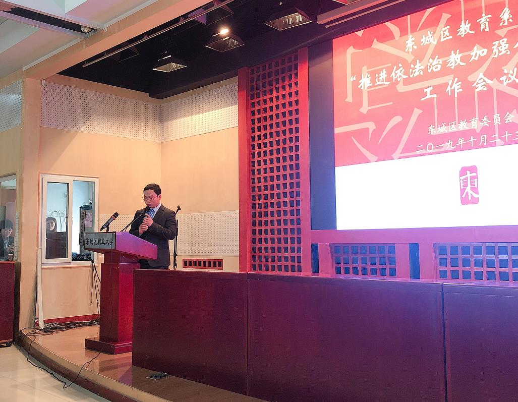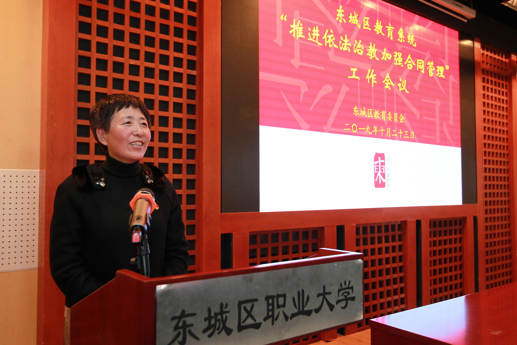 2019年10月23日北京市东城区教育委员会在北京市东城区职业大学召开东城区教育系统“推进依法治教 加强合同管理”工作会议。