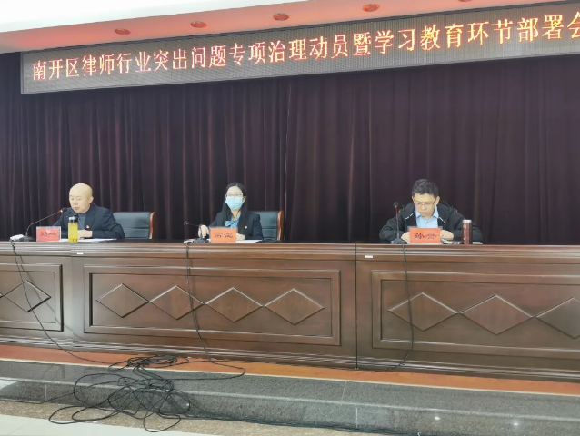 会议伊始,由律工科负责人郑一传达南开司法行政队伍教育整顿会议精神,并就开展南开区律师行业突出问题专项治理工作进行动员部署;随后,郑一同志就南开区律师行业突出问题专项治理工作中学习教育阶段性任务目标进行简要说明。