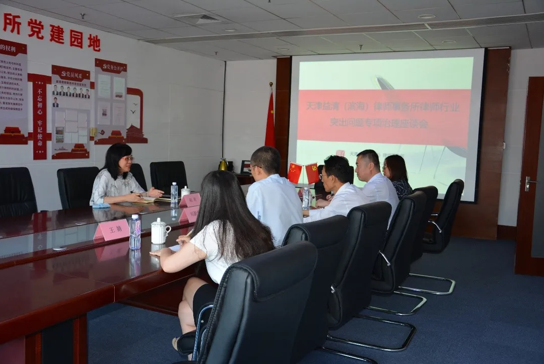 天津经开区司法局律师行业党委主要负责同志到天津益清(滨海)律师事务所就律师行业突出问题专项治理及党建工作进行座谈