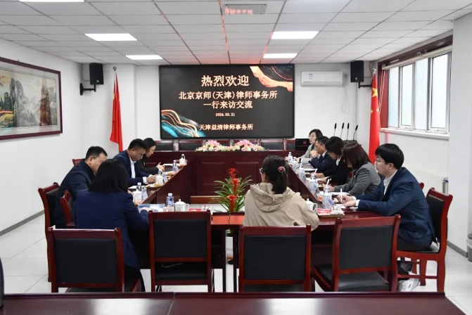 2024年3月21日下午,北京京师(天津)律师事务所执行副主任王云、滨海办公室主任李艳、律所高级合伙人、青工委副主任、数据合规及治理法律事务部主任蔡明、青工委副主任、律所妇联副主席、建设工程法律事务部主任张文娟、孔令雨律师、行政人员马超一行来访我所参观交流,我所合伙人:杨玥(股权证券部部长)、毛成(党支部副书记、党支部部长)、刘铭(房地产权部部长)、贾春雷(行政案件部部长),以及财务管理部部长黄琛进行了热情的接待。