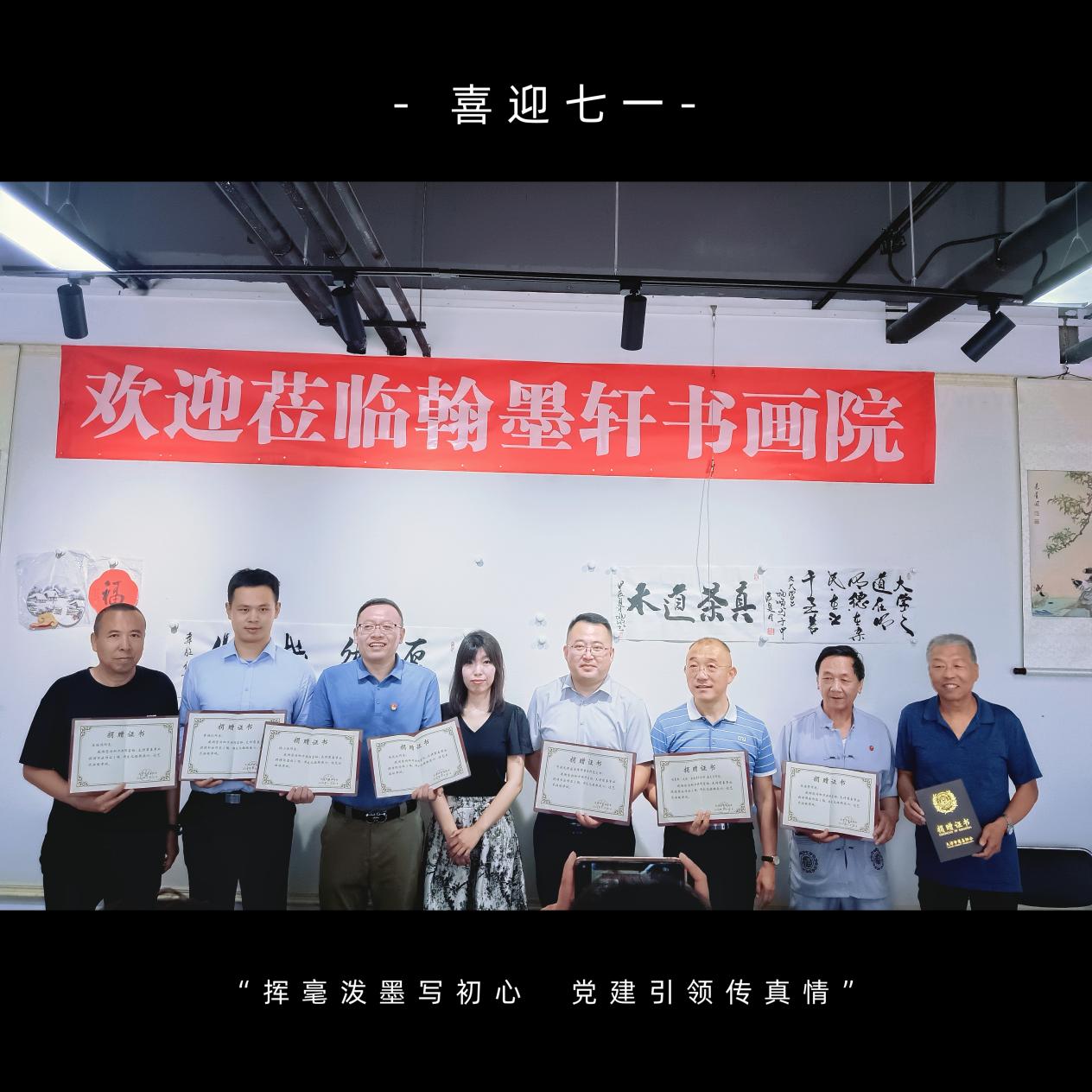 在共忆百年建党史环节,与会党员代表分享了对建党历史的理解与感悟。随后,张康赞老师与广大党员书画爱好者们一起挥毫泼墨、笔走龙蛇,为大家带来了一场视觉盛宴!活动现场气氛热烈而又庄重,书画捐赠环节更是将活动推向了高潮!广大党员纷纷慷慨解囊,捐赠出珍贵的书画作品。中共天津益清律师事务所党支部积极参与捐赠活动,我所韩明星同志作为代表向天津市慈善协会捐赠书法作品一幅,充分展现了我支部无私奉献的精神与高度的社会责任感。