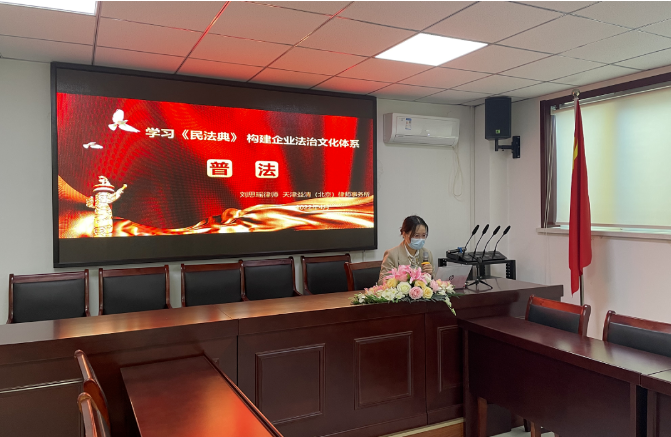 2022年4月15日上午,天津益清(北京)律师事务所刘思瑶律师受邀为中建玖合北方区域公司全体员工开展主题为“学习《民法典》---构建企业法治文化体系”的线上法律培训。