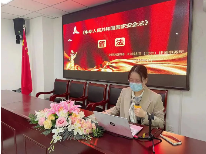 15日正值第七个全民国家安全教育日,刘思瑶律师对《中华人民共和国国家安全法》进行了补充讲述,从公民对国家安全义务延伸到企业员工对企业的保密义务,进行了相关培训。