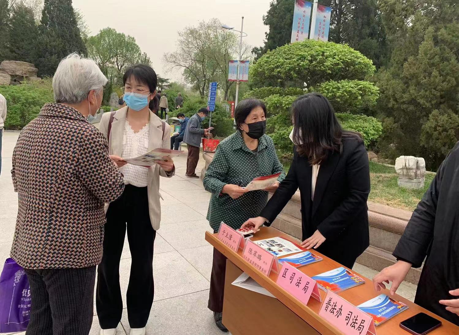 4月14日上午,我所法律顾问部律师陈萃璐、涉外案件部律师于主滢受邀参加区司法局、区普法办在长虹公园开展的全民国家安全教育日主题普法宣传活动,深入学习宣传贯彻党的二十大精神,贯彻落实习近平总书记关于全面加强国家安全教育的重要指示精神,努力增强全民国家安全意识和法治意识。